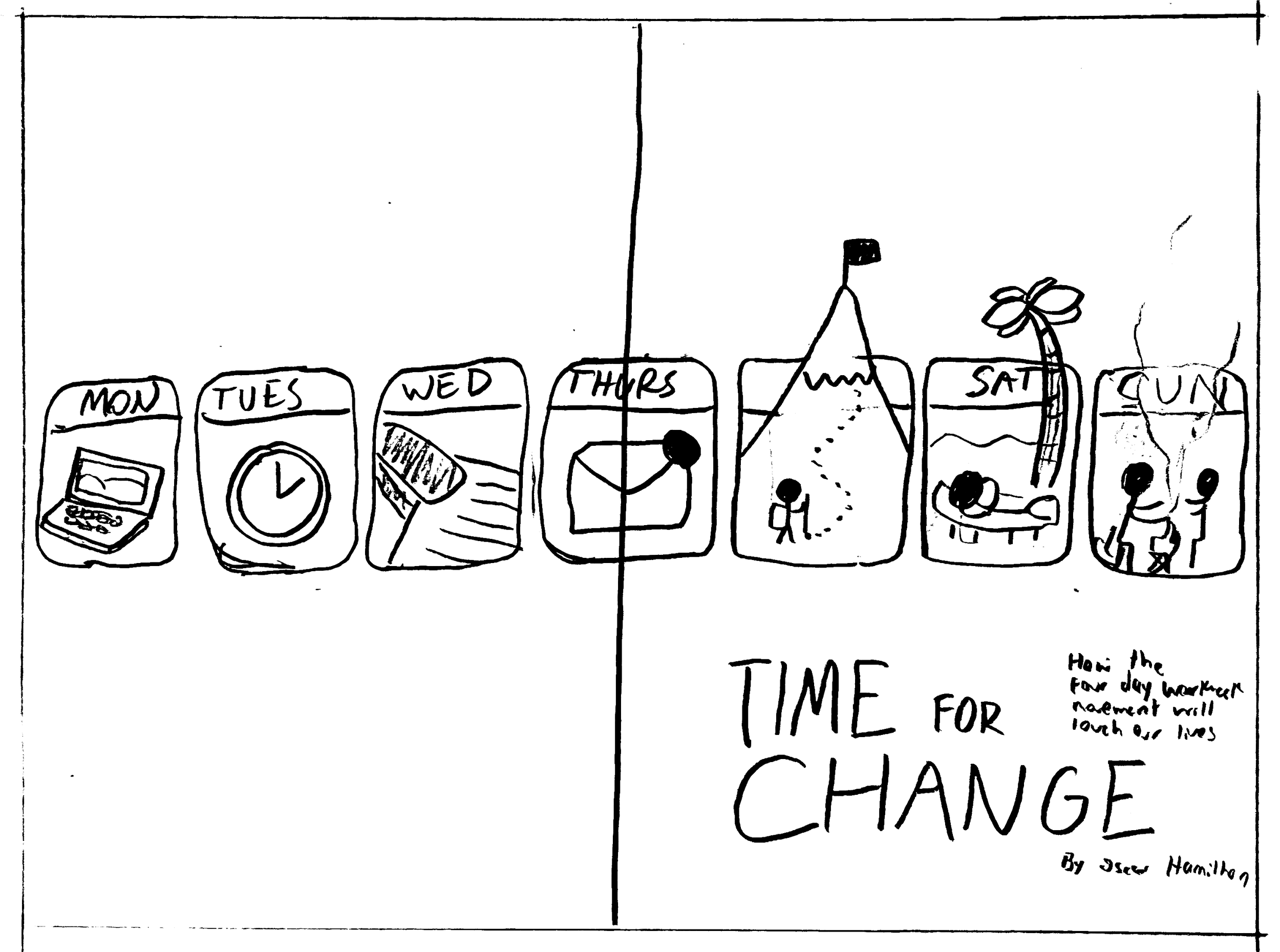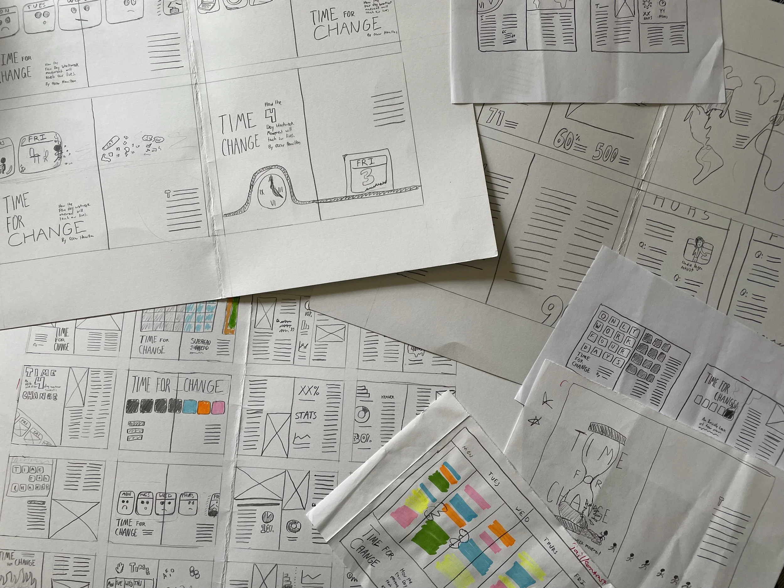 I created these magazine spreads for a story about the four-day workweek, with a special focus on the time it frees up for people to focus on their lives outside of work. The visuals are inspired by the deceptively cheerful colors of a digital calendar, and how nice it would be if we could free up that busy space.